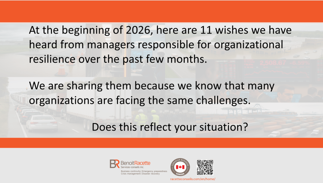 At the beginning of 2026, we took the time to listen carefully to managers responsible for resilience, business continuity and crisis management across organizations of various sizes and sectors.